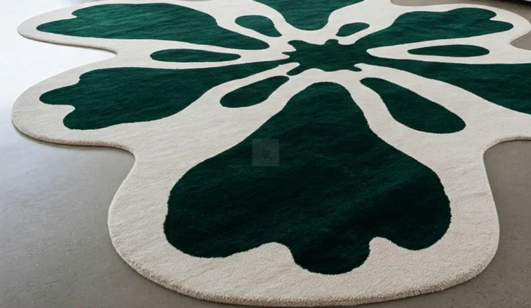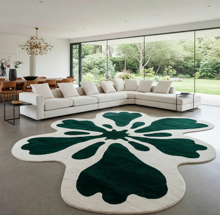 Irregular Abstract Flower Shaped Area Rug – Modern Green and White Carpet for Living Room Decor – Unique Statement Floor Mat