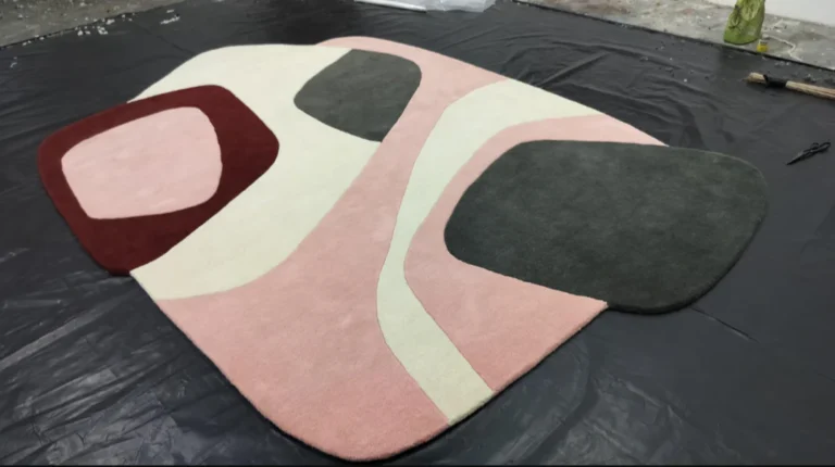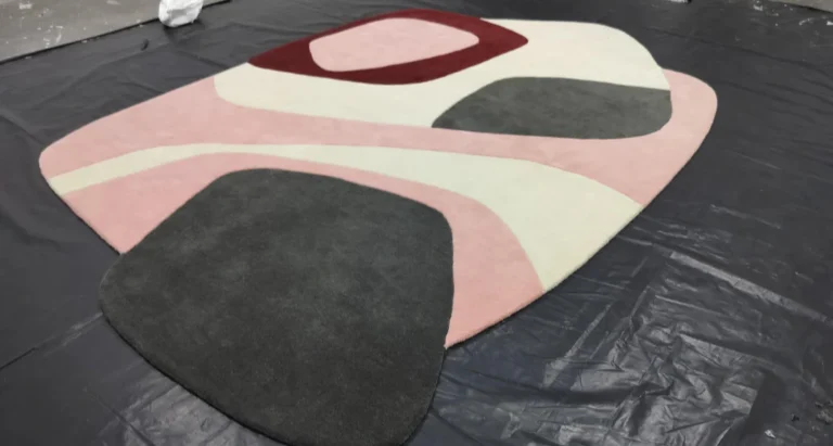 Modern Abstract Area Rug Hand Tufted Wool | Irregular Shape Carpet for Living Room, Bedroom