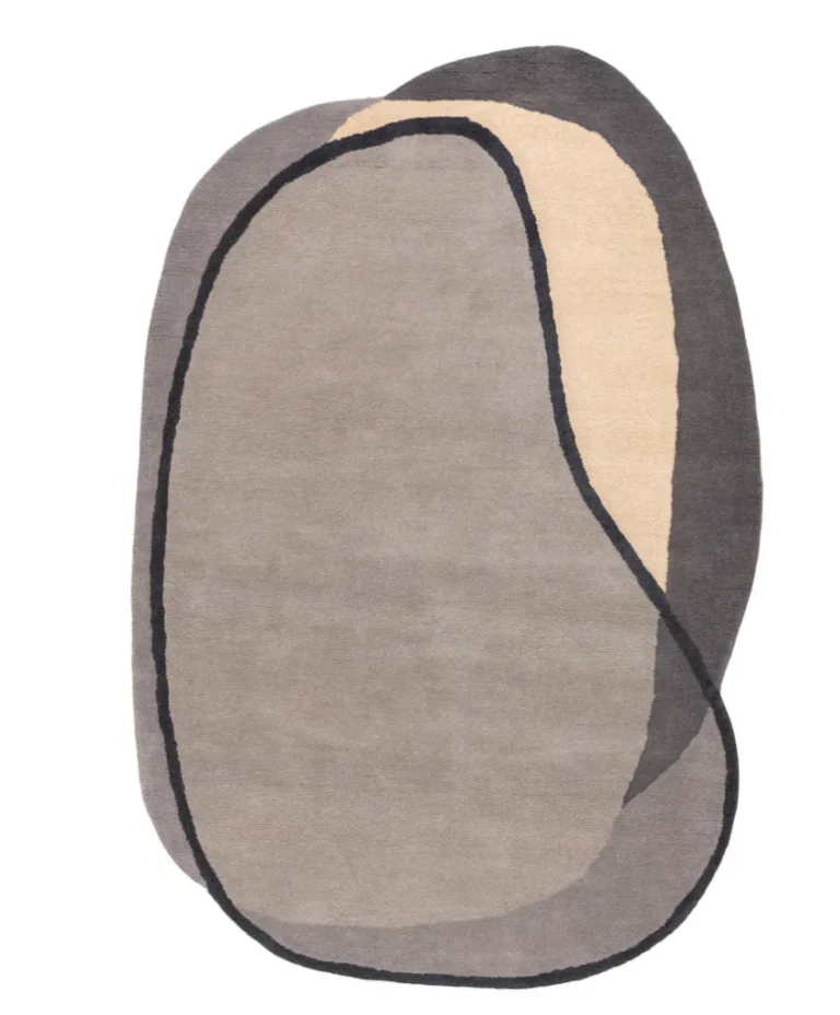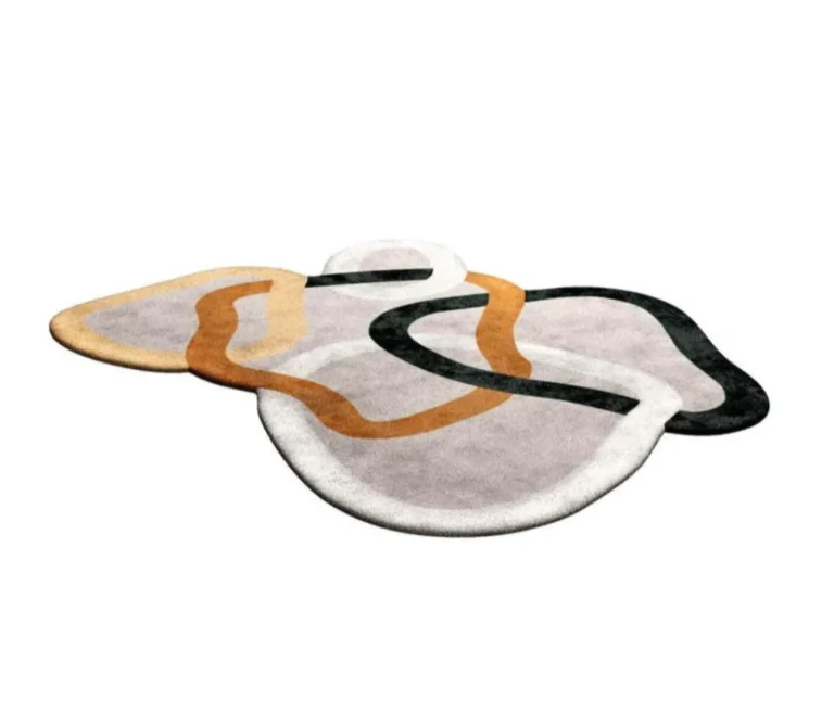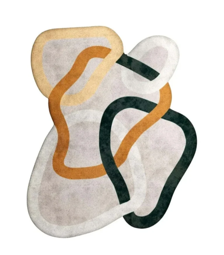 Modern Abstract Irregular Shape Area Rug – Hand-Tufted Organic Shape Carpet in Neutral Tones for Living Room & Bedroom Decor