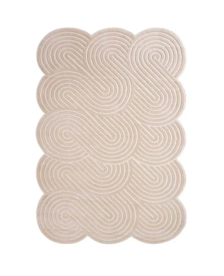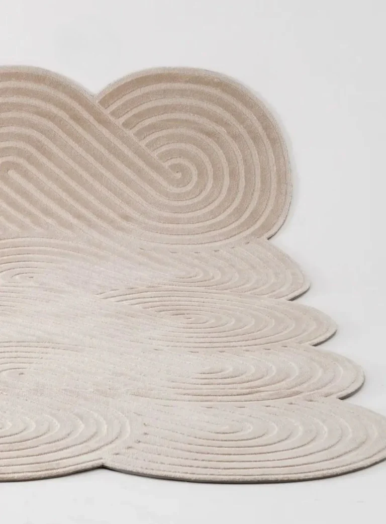 Modern Beige Cloud Shape Rug – Hand-Tufted Soft Wool Carpet | Wavy Minimalist Area Rug for Living Room, Bedroom, Nursery