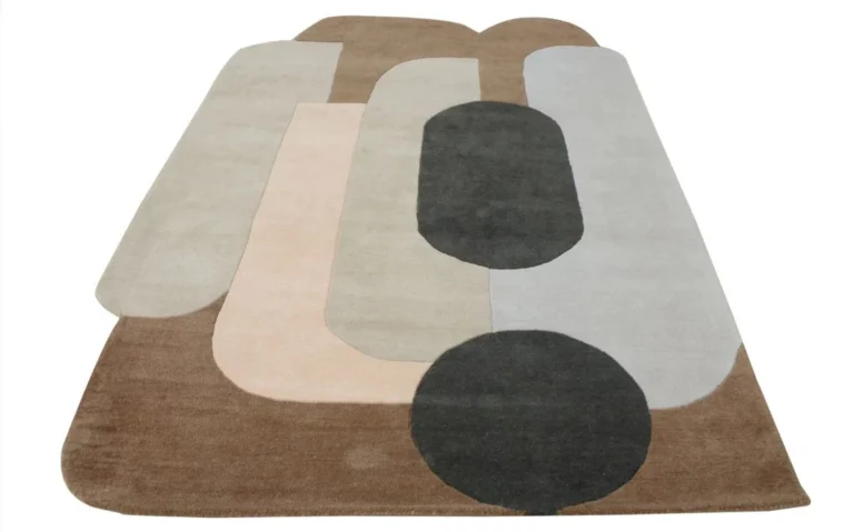 Modern Abstract Geometric Wool Rug – Earthy Tones & Organic Shapes