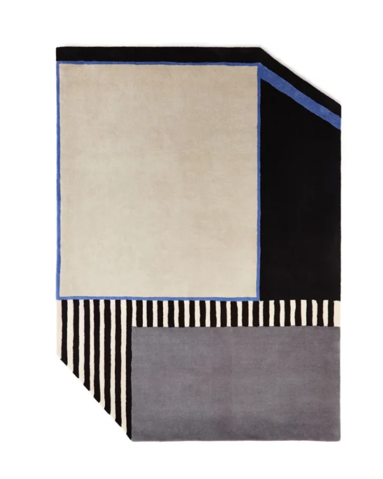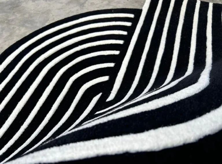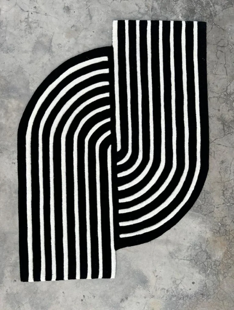Modern Black and White Geometric Rug – Hand-Tufted Abstract Wool Carpet for Living Room, Bedroom, or Office Decor