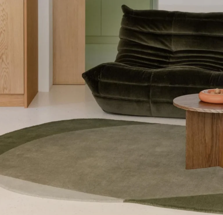 Modern Irregular Abstract Rug – Hand-Tufted Wool Area Carpet | Olive Green & Beige Overlapping Design for Living Room, Bedroom, Office
