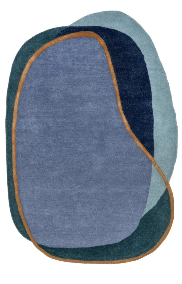 Modern Abstract Rug | Hand-Tufted Wool Carpet | Blue Irregular Shaped Rug for Living Room