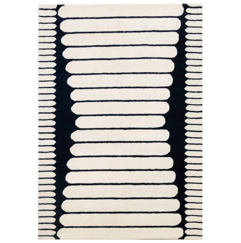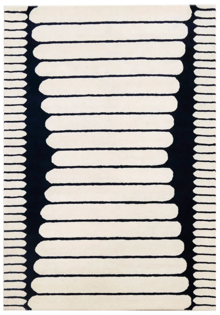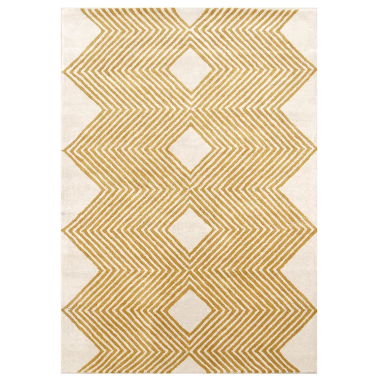 White Geometric Hand Tufted Wool Rug
