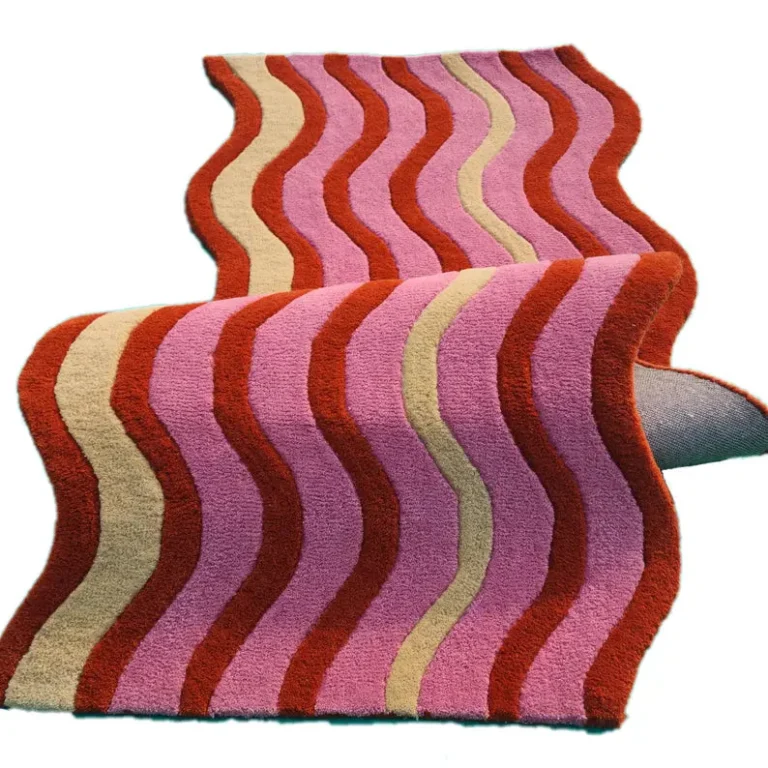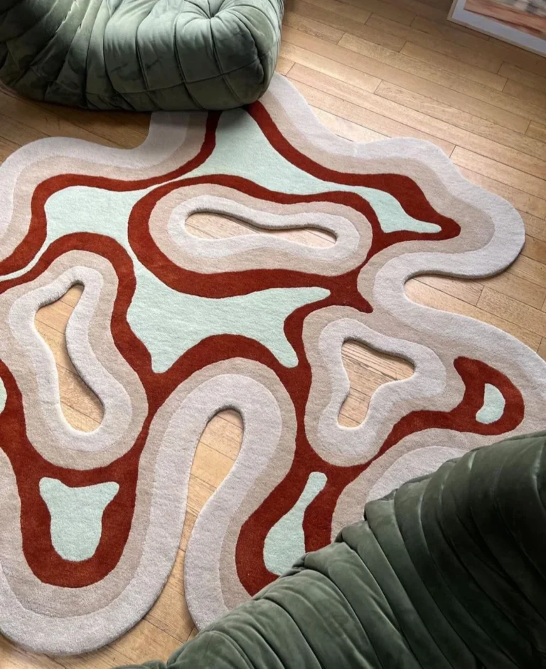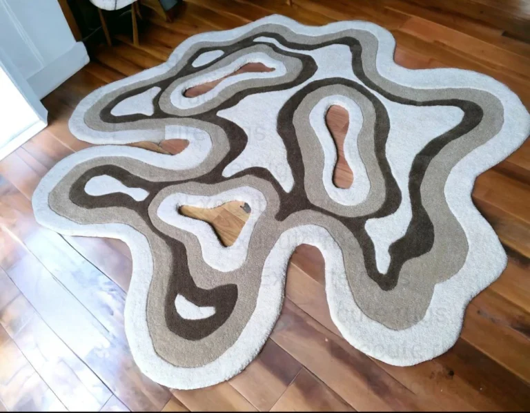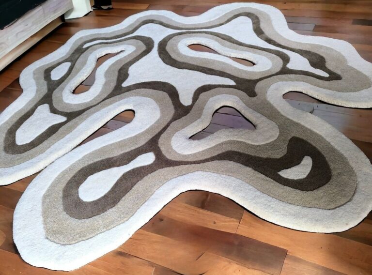 Abstract Irregular Tufted Rug | Modern Wavy Carpet | Handmade Neutral Earth Tone Mat
