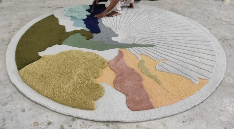 Abstract Modern Irregular Shape Area Rug – Hand-Tufted Multi-Color Organic Shape Carpet for Living Room & Contemporary Home Decor