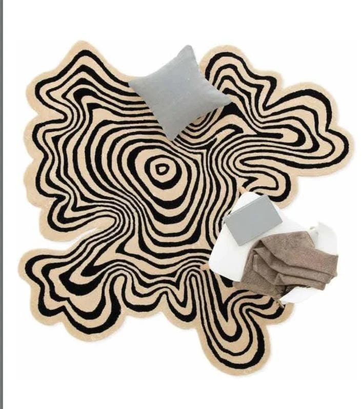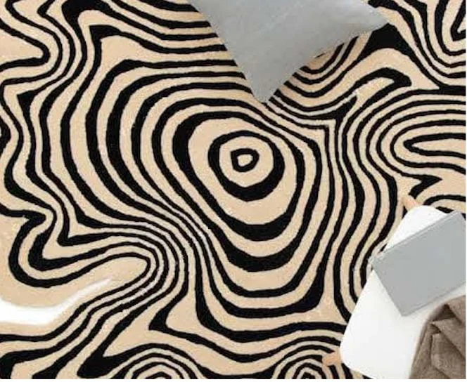 Abstract Topographic-Inspired Area Rug – Modern Wavy Black & Beige Design