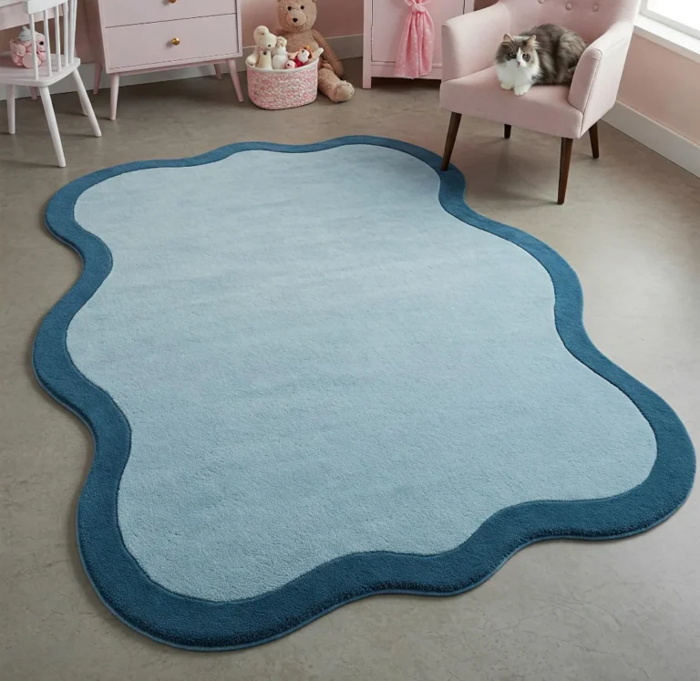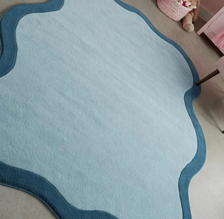 Blue Abstract Irregular Rug – Modern Hand-Tufted Area Carpet for Living Room & Bedroom