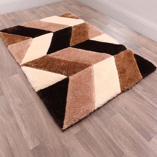 Brown Geometric Microfiber Super Soft Shaggy Carpet