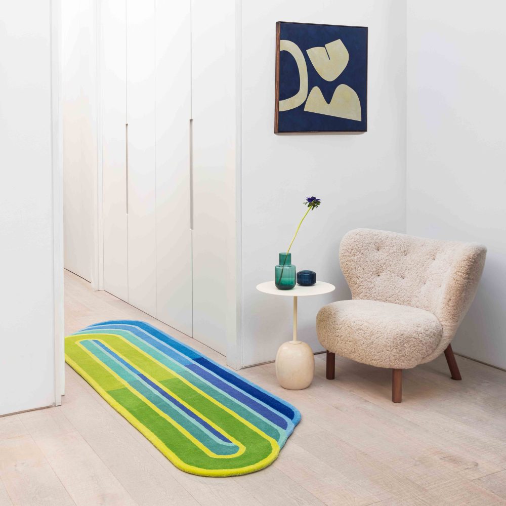 The Capsule Runner?s Fresh colourway is a calming graduation from bright lime and verdant grass greens moving into dreamy sky blues. These colours have the effect of adding freshness and light to a room