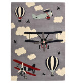 Our Aircraft in Light Gray Sky Hand-Tufted Wool Rug features a playful design and soft texture, adding whimsy and warmth to kids? rooms or creative spaces.