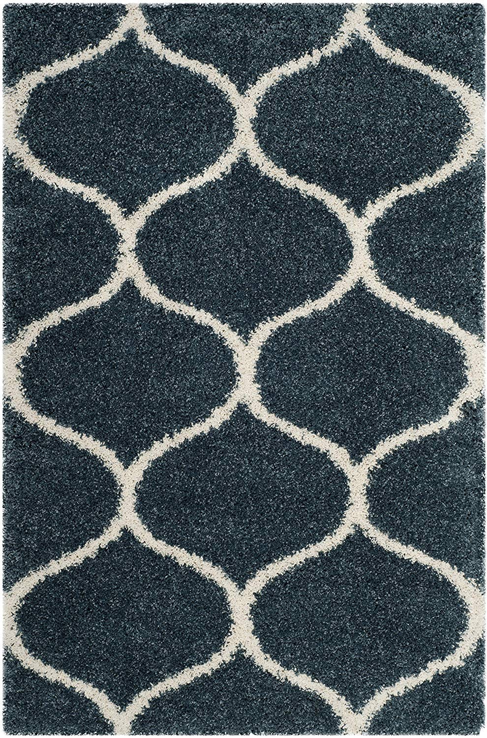 Handcrafted Super Soft Micro Shaggy Teal Blue Ivory Carpet