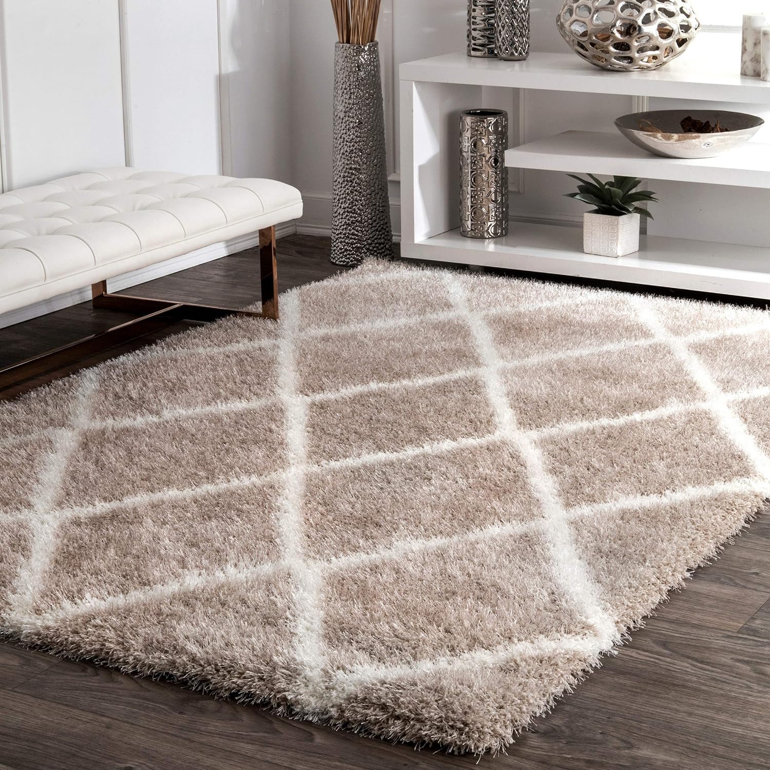 Handcrafted Super Soft Microfiber Shaggy Beige Ivory Trellis Carpet