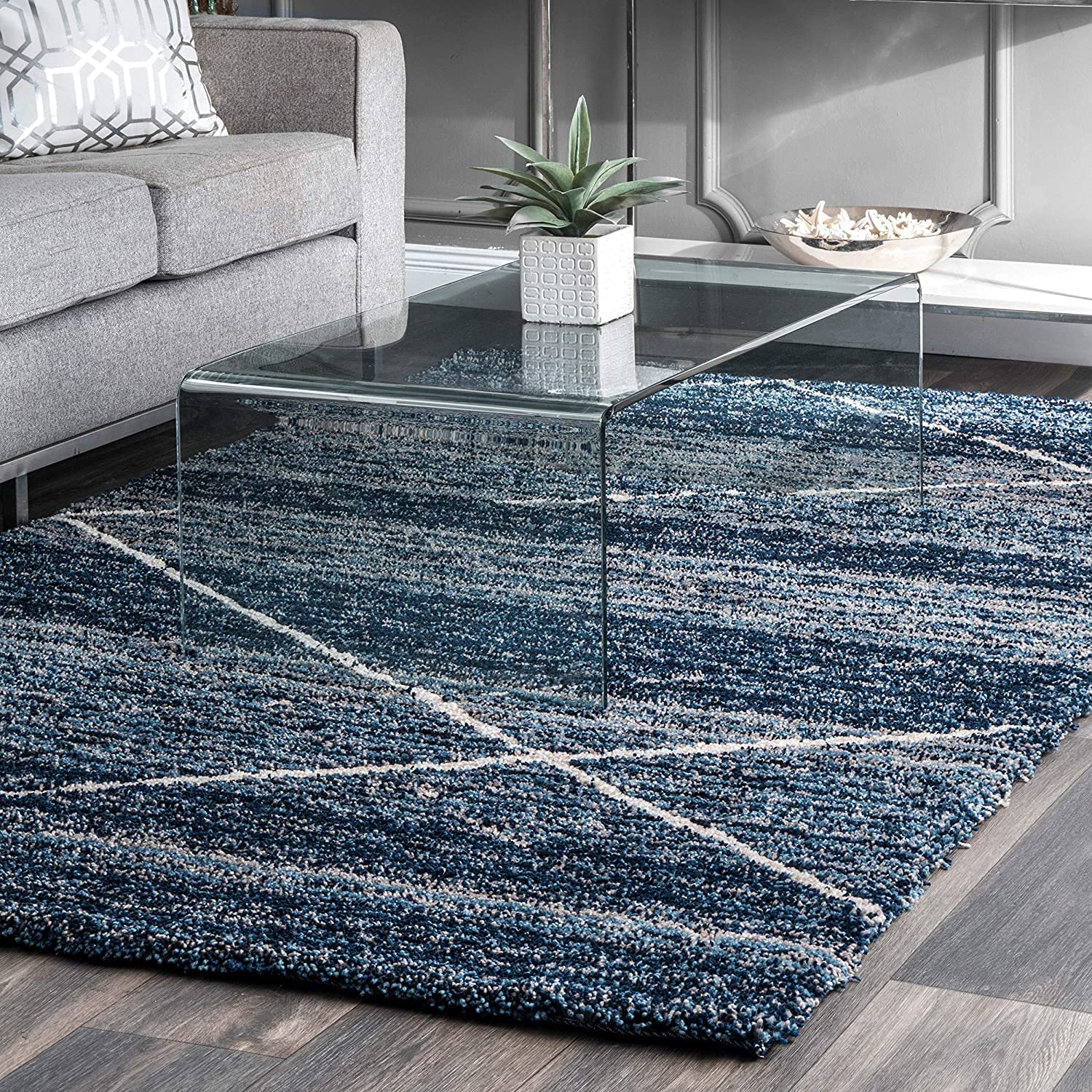 Handcrafted Super Soft Microfiber Shaggy Blue Ivory Mixture Carpet