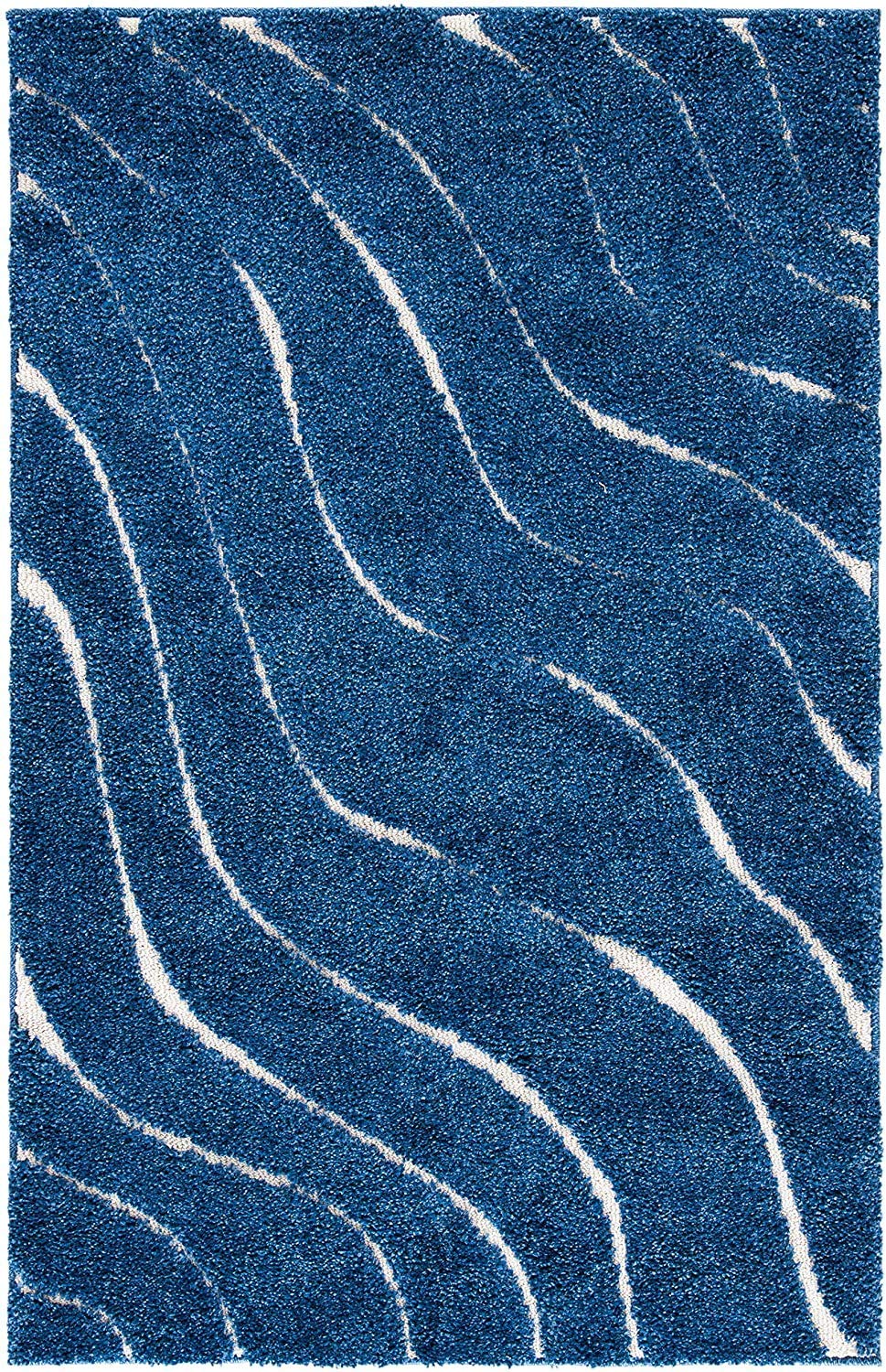 Handcrafted Super Soft Shaggy Navy Blue Ivory Carpet