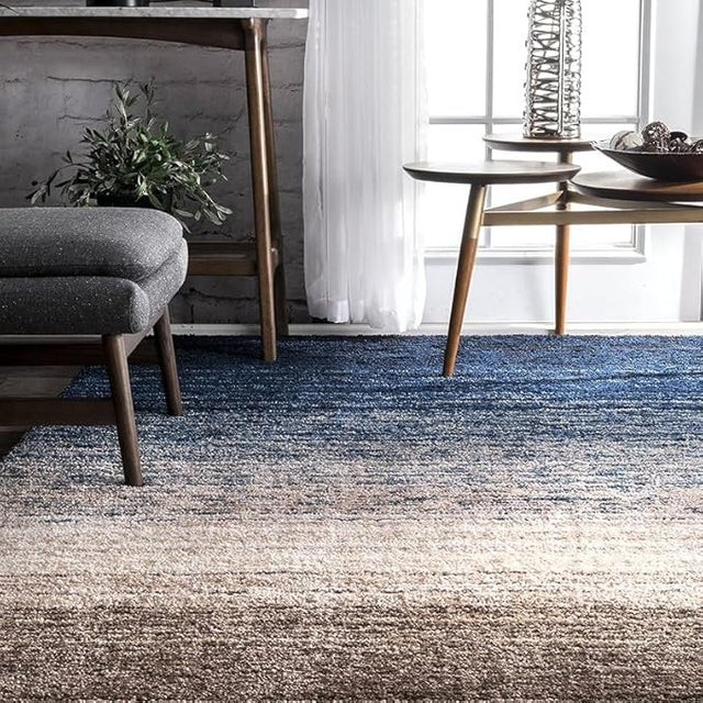 Blue & Beige Ombre Super Soft Microfiber Handcrafted Shaggy Carpet