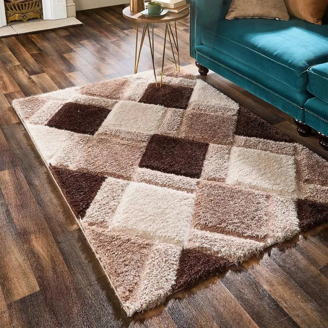 Brown Geometric Microfiber Super Soft Shaggy Carpet